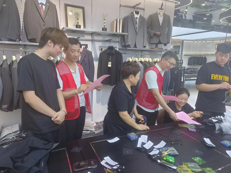 隨后,黨員們深入錢(qián)塘衣城各商戶(hù),發(fā)放防汛知識(shí)手冊(cè)。他們結(jié)合“7·20”特大暴雨真實(shí)案例,向商戶(hù)現(xiàn)場(chǎng)講解預(yù)警信號(hào)含義、暴雨洪澇危害及自救互救方法,提醒大家務(wù)必增強(qiáng)汛期安全意識(shí),提前做好防范措施。